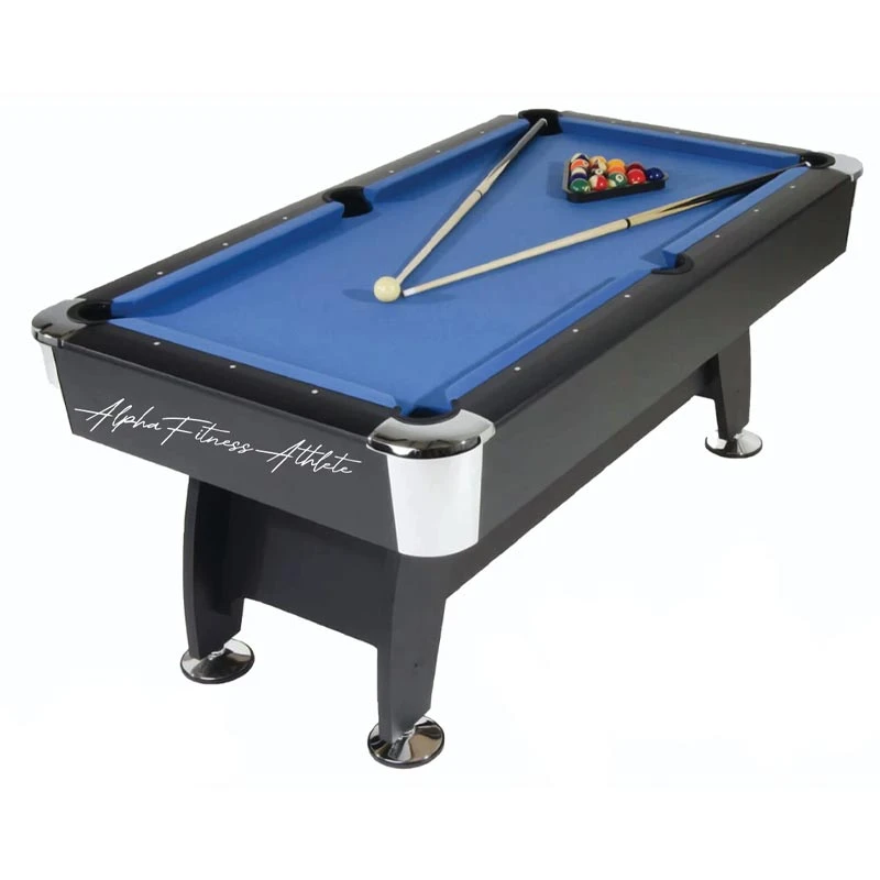 Its bold black body is accented with chrome corners and a striking blue cloth finish that exudes a contemporary, sporty vibe. Whether it’s for a gaming lounge, home, or club setup, this pool table ensures a professional-grade playing experience backed by durability and style.