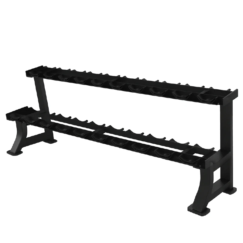 The DR-001 Dumbbells Rack is a premium commercial-grade storage solution designed to keep free weight areas organized, safe, and efficient. Engineered with a heavy-duty steel frame and a two-tier saddle design, it securely holds a full set of dumbbells, preventing them from rolling and making selection easy for users during intense training sessions.