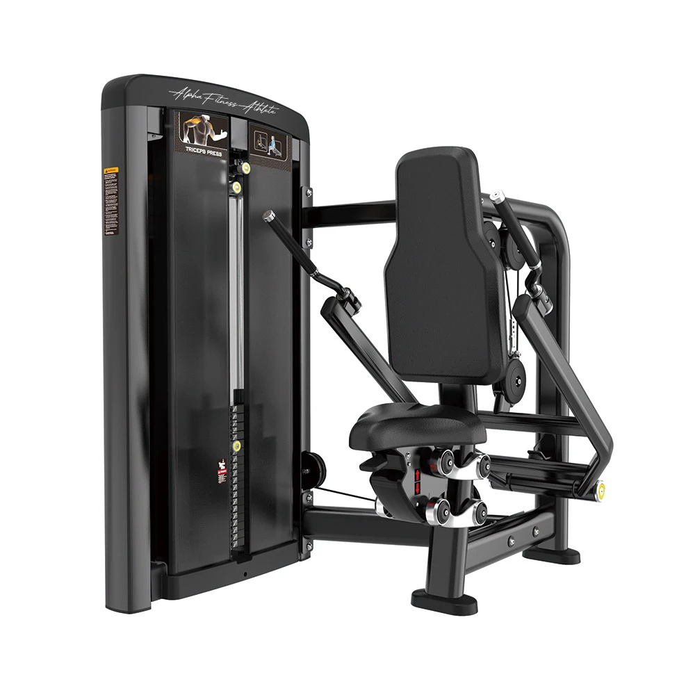 This commercial Tricep Press Machine is designed to deliver a controlled and powerful pressing motion that isolates the triceps with excellent form and stability. The machine features a seated position with angled press handles, allowing users to engage the triceps through a natural push-down movement without strain on the shoulders or wrists. The pin-loaded weight stack makes resistance adjustments simple and quick, while the ergonomic backrest and seat pad provide full body support during each repetition. Ideal for gyms, fitness centers, and strength-training facilities, this machine ensures consistent resistance, smooth mechanics, and a safe workout experience for users of all levels.