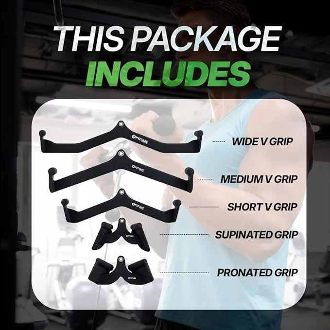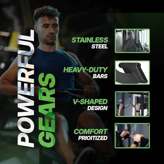 - VERSATILE ATTACHMENTS: 5 attachments for different grips and muscles.Suitable for triceps press downs, lat pulldowns, neutral grip lat pull down bars, and cable pull down attachments.