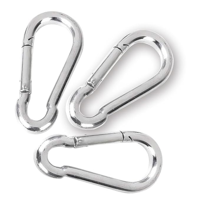 - The carabiner clips designed for fast and convenient connections, it features a spring loaded and self closing which allow quick connect/dis-connect of ropes, chains and straps Comes in a pack of 3