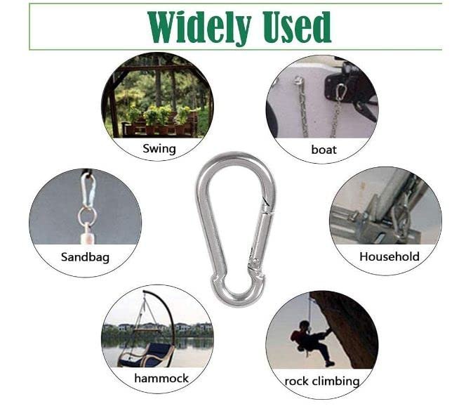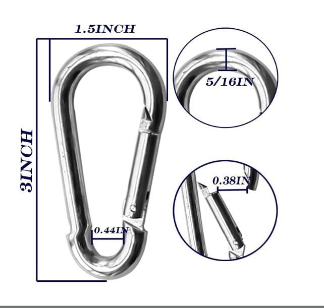 - 3″Inch ,A10 5/16 Made of high quality Steel material, which is elegant, strong , and practical. After professional polished, the high strength carabiner/Snap Hook clip is waterproof, rustproof, and wear resistant