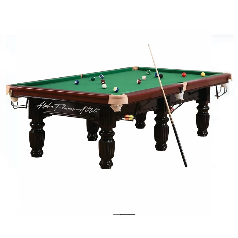 Constructed from solid hardwood and fitted with a premium slate playing surface, the table offers unparalleled smoothness and long-term durability. The imported British-style cloth ensures optimal ball roll, while the leather inner pockets — made to tournament specifications — add to its luxurious appeal. Premium designer legs not only provide aesthetic value but also ensure rock-solid stability during intense play.