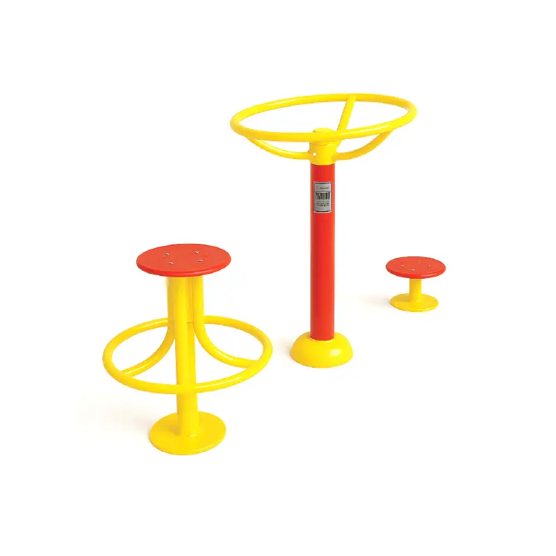 Built with a sturdy steel structure, the ARE-014 is designed to withstand frequent use in outdoor environments. The standing station features a large circular handrail for balance, while the seated station includes a rotating stool, ensuring safety and stability for users as they perform twisting exercises to loosen the spine and tighten the midsection.